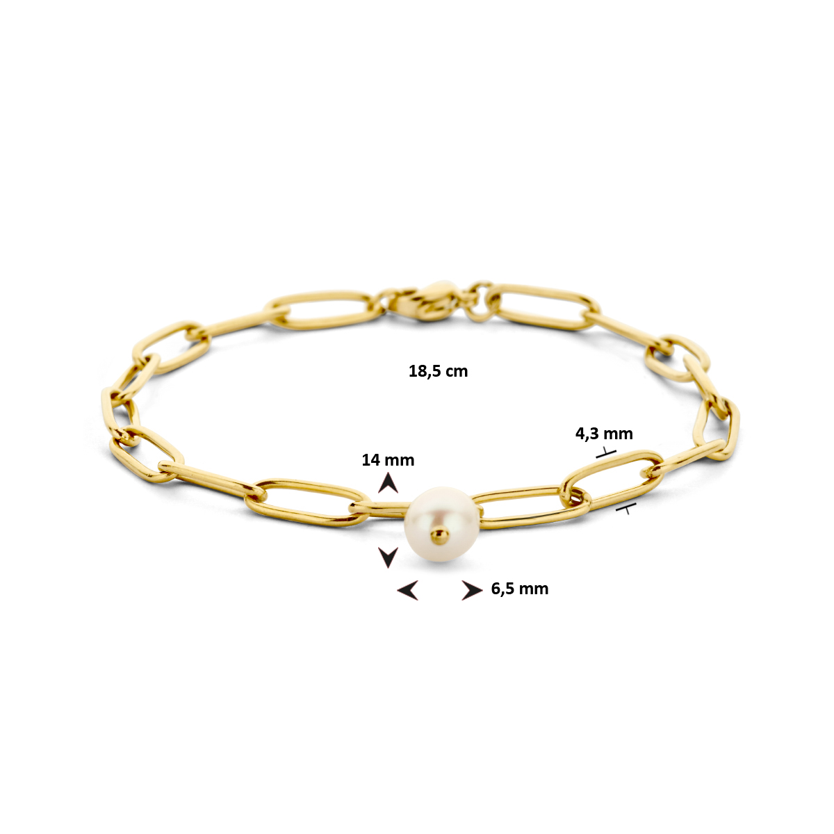 Stalen armband uitgevoerd met schitterende synthetisch parel. De armband heeft een draaglengte van 18.5cm en schakelbreedte van 4.3mm.