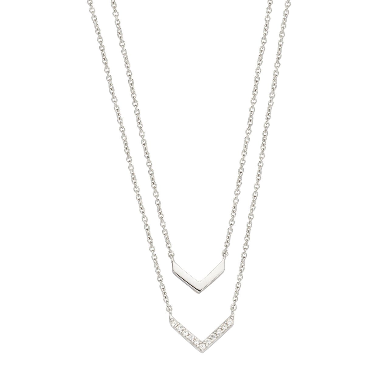 Zilveren collier 2x colliers met x een v vorm