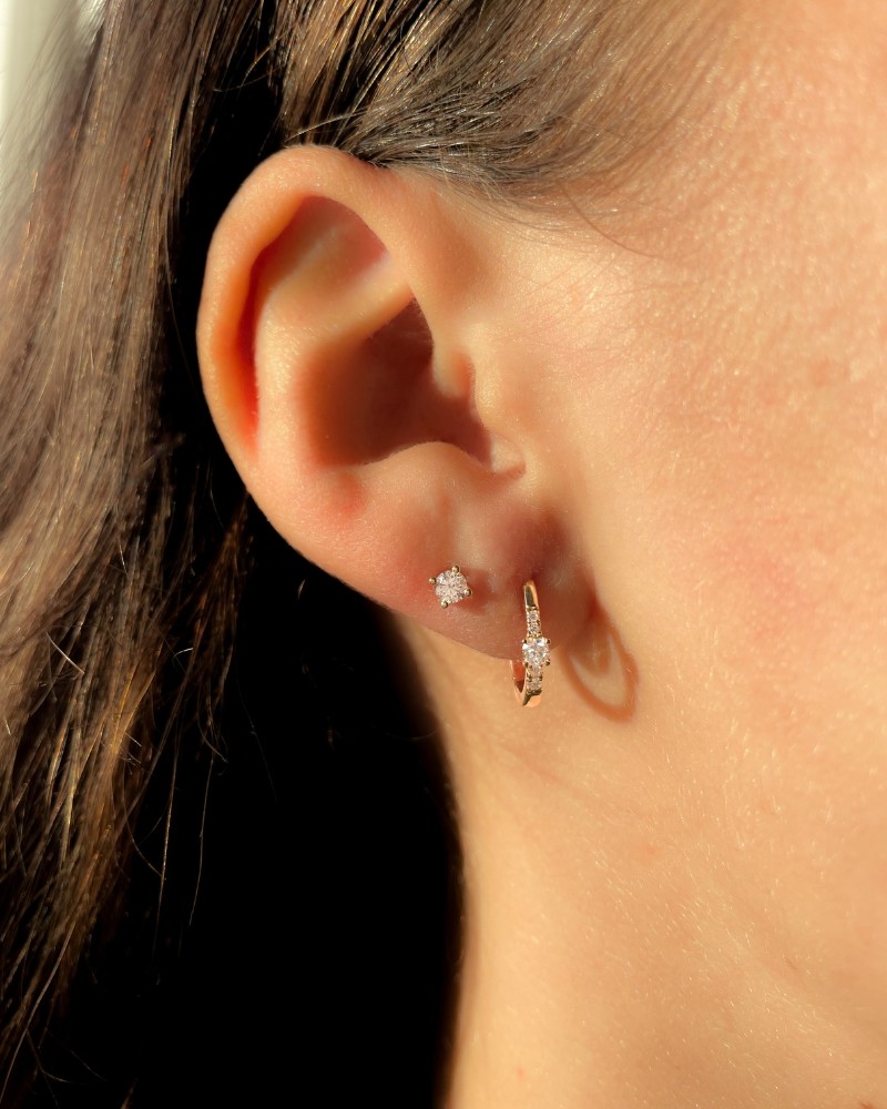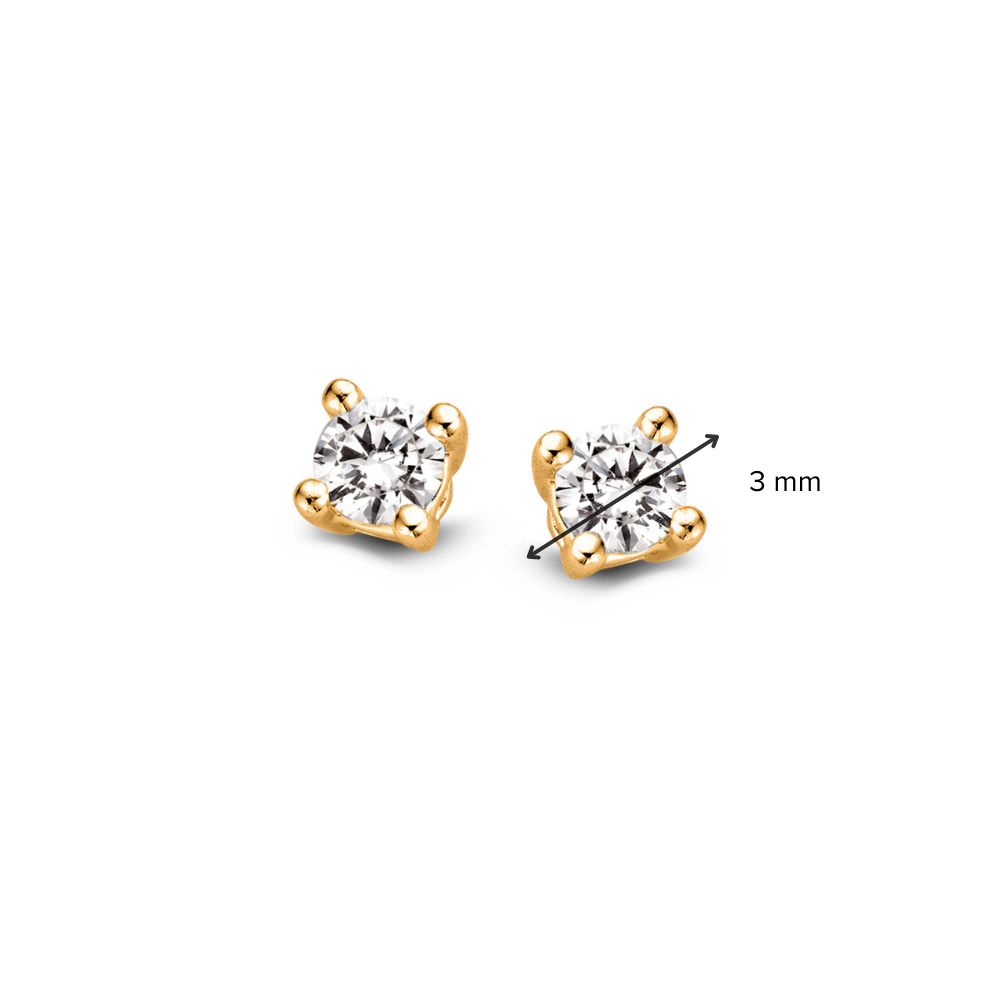 Geelgouden solitair oorknoppen met 2x 0,10crt.