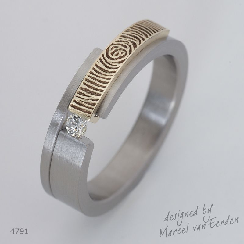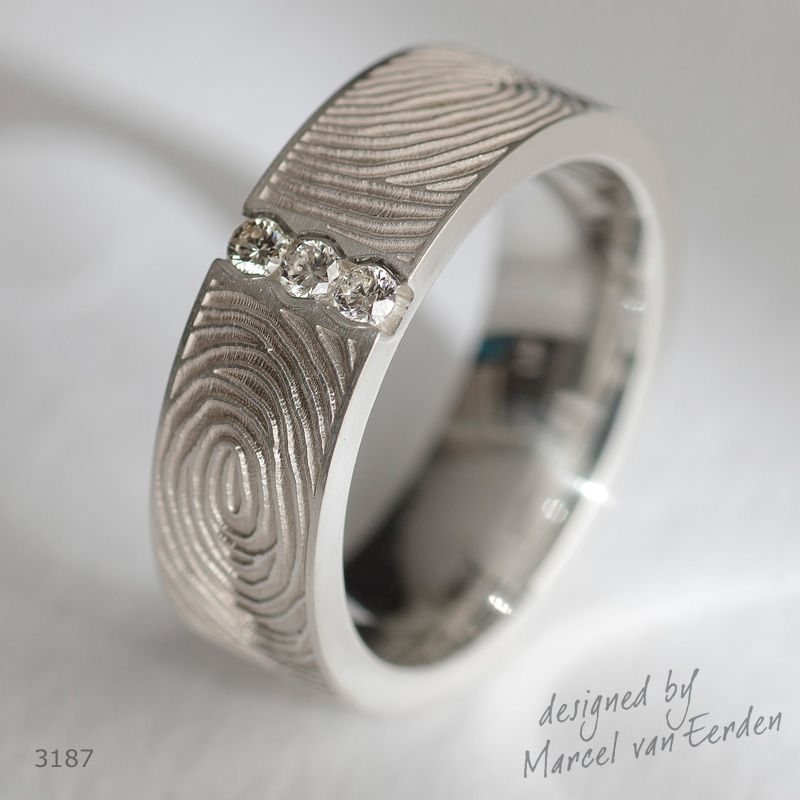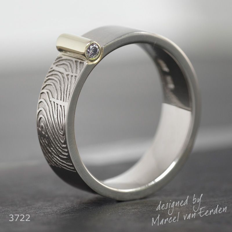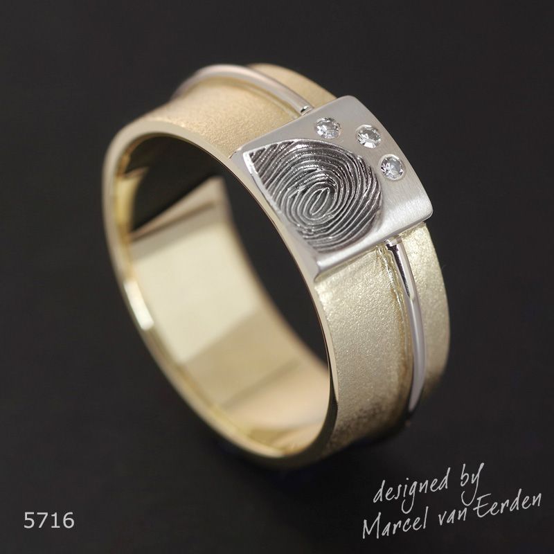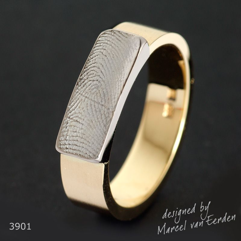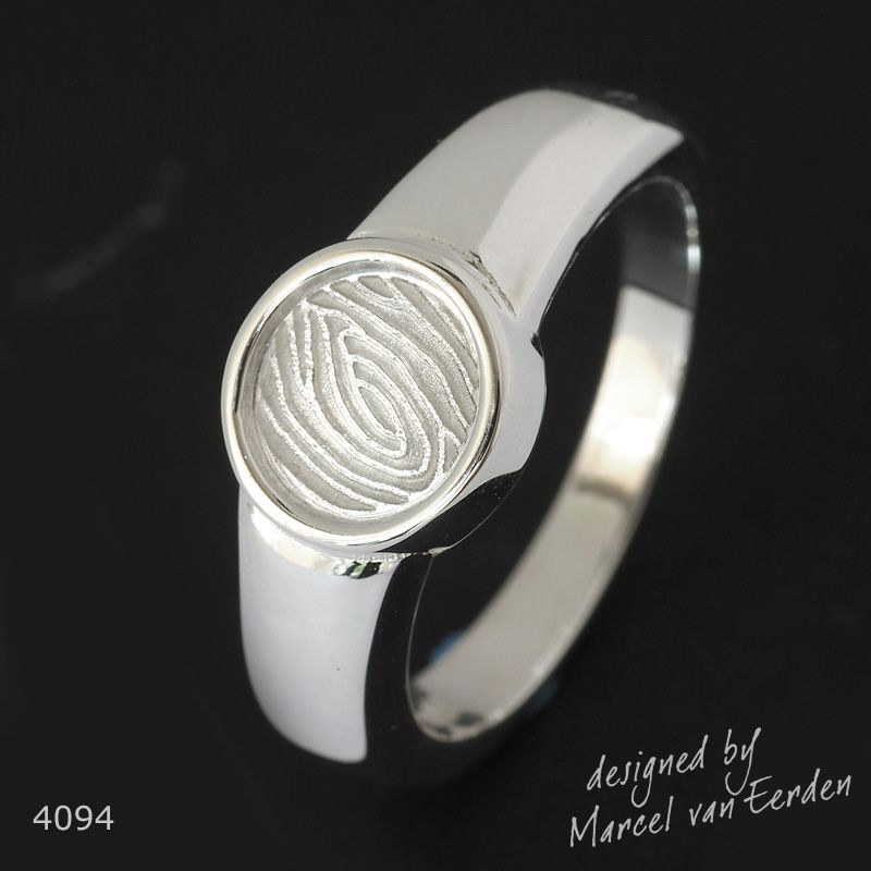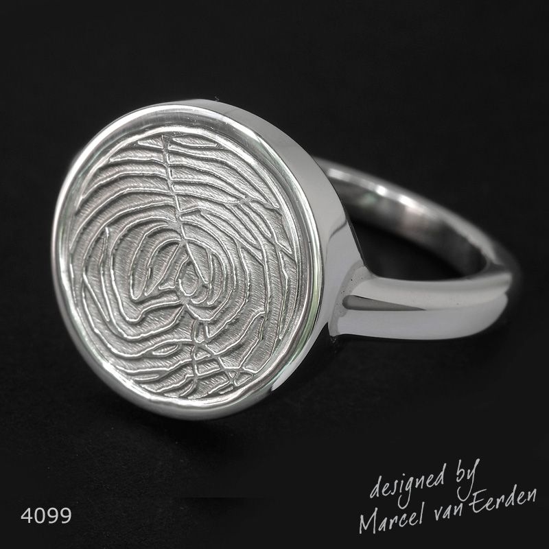 - Wasafdruk: Met een speciale was, in een warme of kneedbare vorm, wordt de vingerafdruk afgenomen. Dit wordt als mal gebruikt om te gieten in zilver of goud.