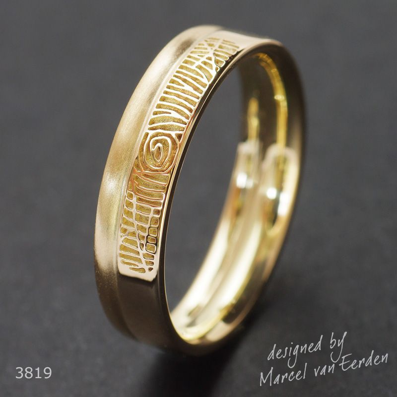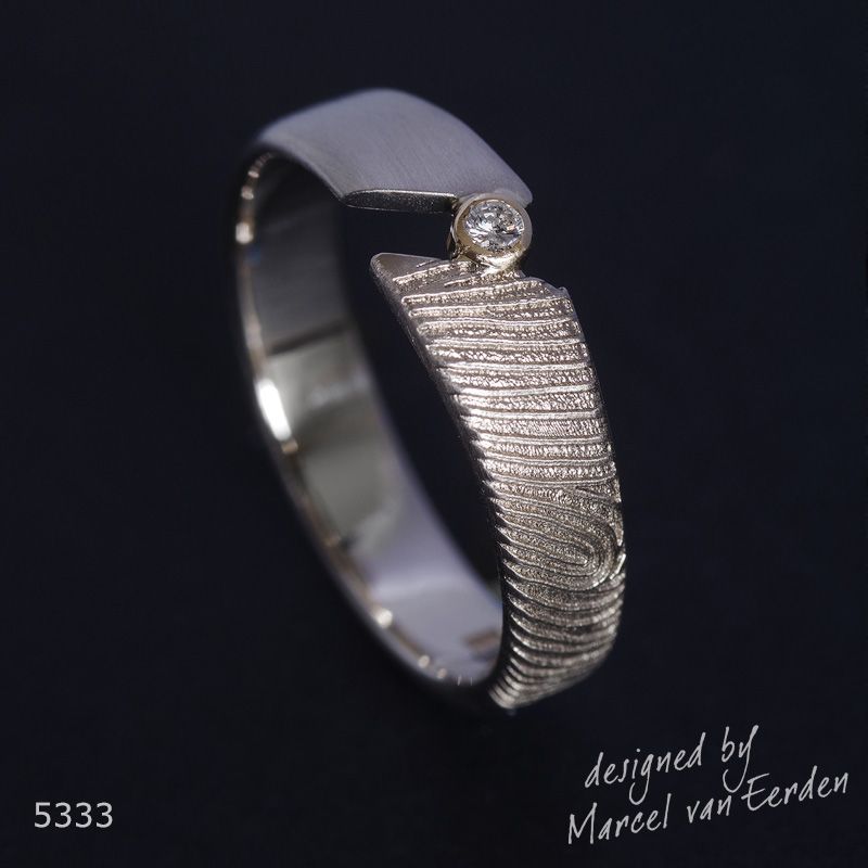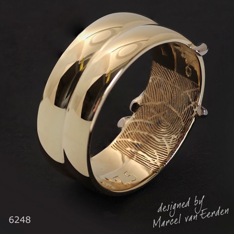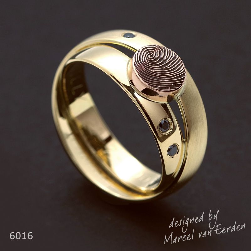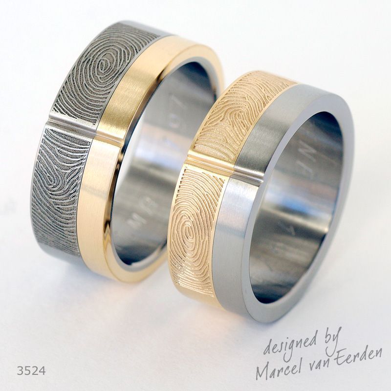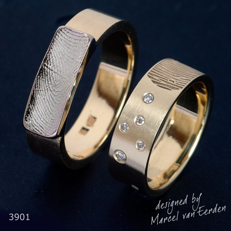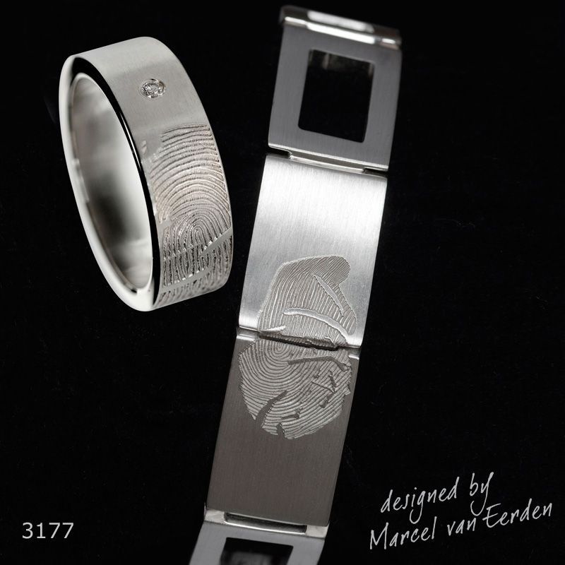 - Wasafdruk: Met een speciale was, in een warme of kneedbare vorm, wordt de vingerafdruk afgenomen. Dit wordt als mal gebruikt om te gieten in zilver of goud.
