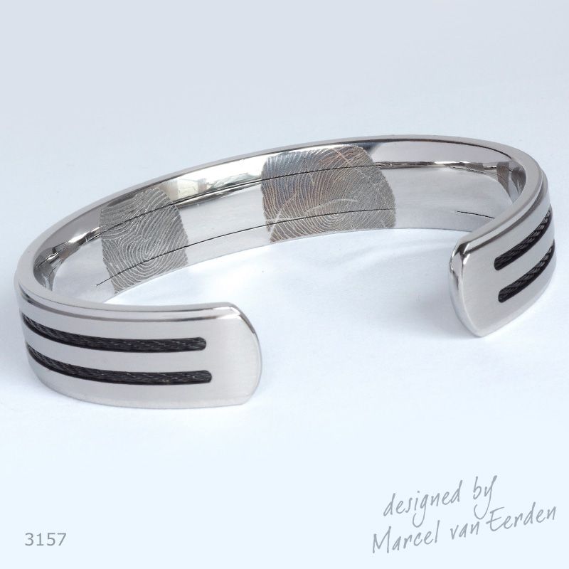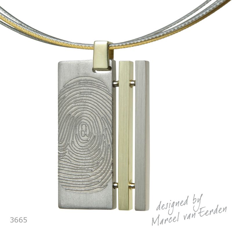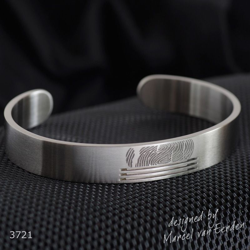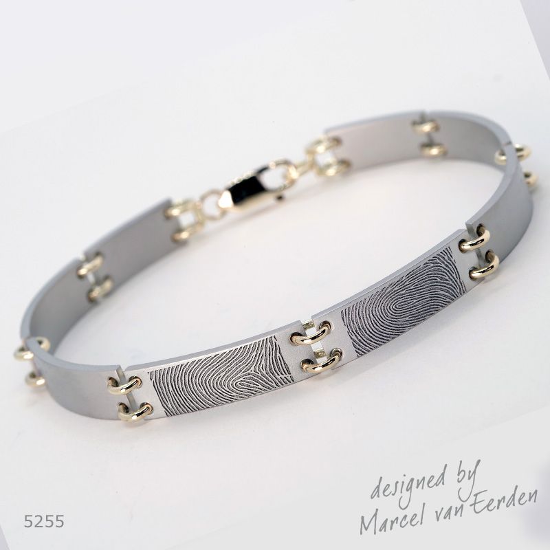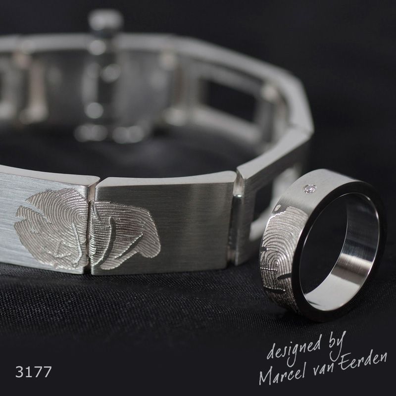 - Inktafdruk: Op een wit papier wordt een afdruk met inkt gemaakt, deze wordt gescand en overgebracht op het sieraad waarin het wordt gelaserd.