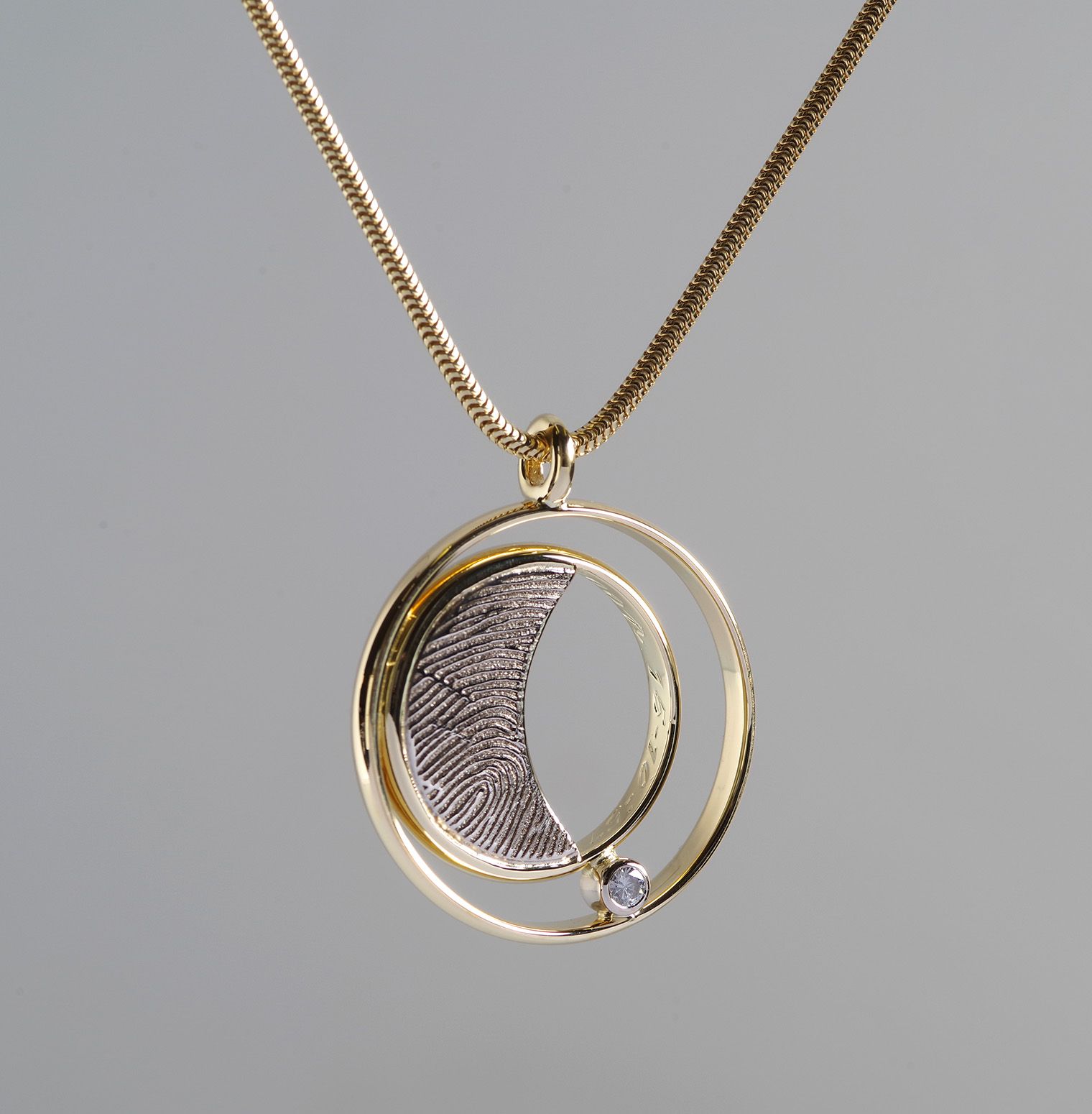 Vingerafdruksieraden zijn sieraden met een tastbare herinnering. Je kunt letterlijk het reliëf van de vingerafdruk in het materiaal voelen. Er wordt hier gewerkt met verschillende methodes: